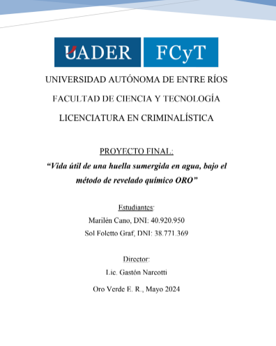 El presente proyecto tuvo como objetivo analizar la detectabilidad de huellas naturales y contaminadas con elemento graso, depositadas en superficies porosas que estuvieron en contacto con el agua y que no lo estuvieron, mediante la utilización del reactivo revelador Oro (Oil Red O). Esta investigación presenta un enfoque cuantitativo y su diseño es experimental. Para cubrir los grupos etarios más comunes y realizar un análisis comparativo, se llevó a cabo una selección de 20 personas, en grupos de cinco diferentes rangos de edades, y de cada rango etario definido, se seleccionaron dos personas de sexo masculino y dos de sexo femenino. En primera instancia, cada voluntario depositó sus huellas con componentes sebáceos propios en un soporte papel, que luego se dividió en dos partes resguardando una en un sobre y sumergiendo la otra en agua; luego de cierto tiempo, estas mitades fueron sometidas al reactivo por 60 minutos para revelar las huellas, y proceder a su fotografiado. Este proceso se repitió en una segunda instancia, pero utilizando un elemento contaminante (crema para manos). Ambos procesos se realizaron durante 24 y 25 días cada uno. La documentación de los resultados se realizó mediante el uso de tablas para su posterior análisis, estableciendo parámetros como: sin visualización de huella, visualización de manchas, detalles observables de crestas, impresión clasificable e impresión identificable. Por consiguiente, la detectabilidad de la huella con el reactivo revelador Oro se ve afectada a medida que van pasando los días.