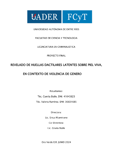 El revelado de huellas abarca un campo amplio dentro del mundo de la Criminalística. Puede realizarse a través de diferentes métodos y reactivos y en una gran variedad de soportes. En esta investigación se utilizó el reactivo magnético verde fluorescente, y un tipo de soporte complejo como lo es la piel humana viva. El objetivo de esta investigación fue explorar la utilidad del reactivo físico magnético verde fluorescente para el revelado de huellas latentes en piel viva, donde se encuentran presentes el alcohol y la marihuana, en posibles casos de violencia de género. Se planteó una metodología con enfoque cuantitativa, de tipo exploratorio. Para la ejecución del revelado, el soporte a utilizar (piel humana viva) correspondía a una femenina, mientras que las huellas a revelar fueron estampadas por diferentes masculinos, los cuales se dividieron en tres grupos: consumidores de alcohol, consumidores de marihuana y blanco/testigo; en tres zonas diferentes del cuerpo: cuello, brazo y antebrazo. En cuanto a los resultados, se destacó que el mayor número de huellas reveladas se dieron en la zona brazo y en el grupo consumidores de marihuana. El reactivo utilizado resultó eficaz para el revelado de huellas sobre piel humana viva. Las huellas reveladas no presentaron una diferencia física significativa que permita distinguirlas en base a las distintas sustancias consumidas (alcohol y marihuana).